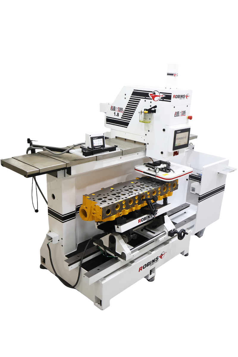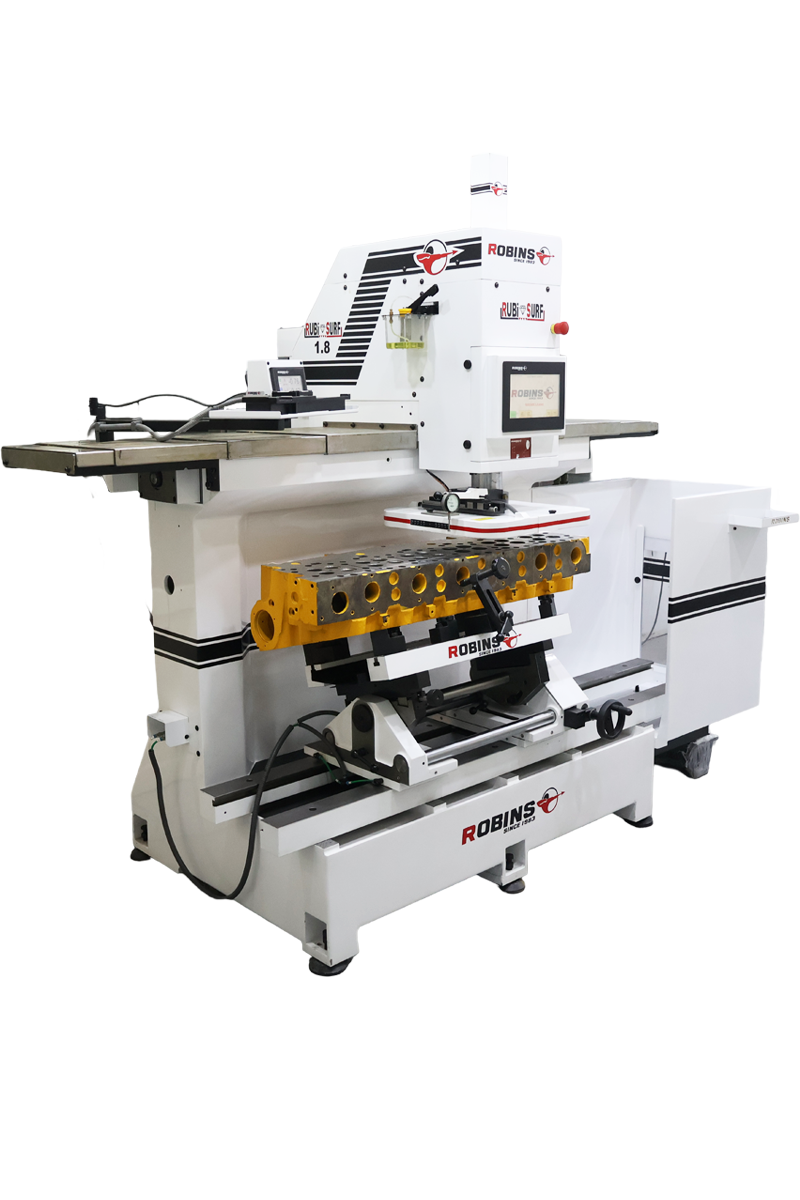 The Robins Rubi-Surf 1.8 is a CNC surfacing machine designed for accurate and repeatable machining of cylinder heads and V-block engines. The RubiSmart touchscreen control system removes all physical switches, making setup faster and more straightforward. A 420 mm cutterhead, CNC-servo travel, and fully adjustable spindle speed and feed rates allow precise control of material removal and surface finish quality, achieving results down to 0.5 Ra μm. The machine’s rigid structure and large workhead capacity ensure stable cutting performance and high productivity for all types of engine rebuilding and machine shop operations.