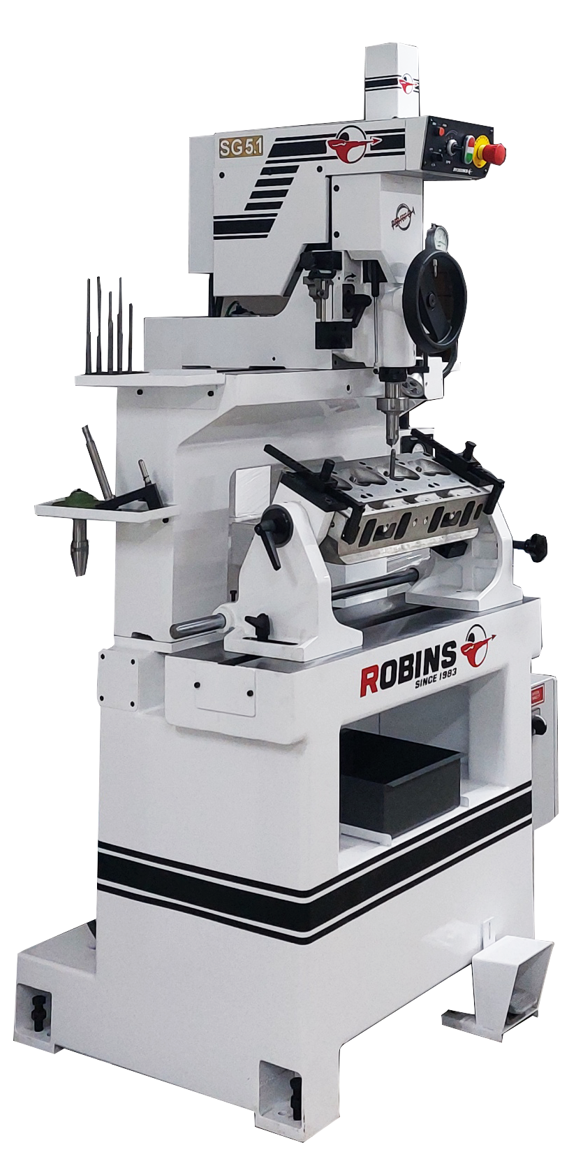 Designed for versatility, the SG 5.1 is suitable for reconditioning domestic and imported performance automotive cylinder heads, as well as motorcycle engine components. Robins also provides customizable tooling options, allowing workshops to tailor the machine to their specific needs, improving efficiency and workflow.
