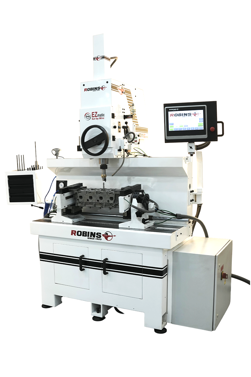 The Robins SGH 11 EZmatic is an automatic seat and guide machine designed for accurate and repeatable valve-seat machining on small to medium diesel, automotive, and powersports cylinder heads. It combines manual setup with CNC “Cut-by-Wire” automatic seat cutting, allowing operators to achieve consistent seat geometry with minimal input.